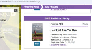 “In How Fast Can You Run, Harriet Levin Millan tells the story of one boy’s search for a mother’s love through almost unimaginable pain and suffering. After being separated from his family at the age of five during Sudan’s civil war, Majok and later Mike, the novel’s real-life South Sudanese protagonist, braved war, hunger, and desperate illness before arriving in the United States as a refugee. Millan, who met Michael Majok Kuch when her creative writing class interviewed Sudanese immigrants, brilliantly renders the contours of Dinka and refugee life as well as the internal life of a young refugee tormented by the loss of his family and his childhood. Congratulations to Millan. How Fast Can You Run is a marvelous achievement.”