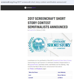 ScreenCraft Names Short Story Semifinalists: Semifinalists have been announced for the 2017 ScreenCraft Short Story Contest, representing the top 12 percent of submissions received —MovieBytes