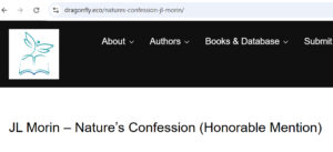 “Nature’s Confession by JL Morin: The eco-novel is wonderful and reminds me of classic science fiction I watched or read as a kid. It was a genre that fascinated me then, and this book has joined that memory. The novel is epic in that it doesn’t just tell a story (which it does do too), but it puts our very survival into question while romping through the universe or discovering new quantum physics that are both scientific and spiritual in nature. In the meantime, universal symbols are unearthed, codes are investigated, fat corporations are dominating, a romance is blossoming, computers come alive, and native tribes and Nature on another planet bring our own treasured past into the future.”