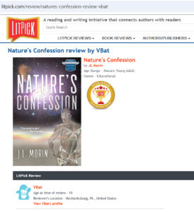 “What I found most riveting about J.L. Morin’s Nature’s Confession is the concept of busywork. Her young hero is disgusted by how most people are trapped being kept so busy that they have blinders toward the bigger picture and how the planet is being harmed. Aren’t we all so wrapped up in our own lives and stress and work that we feel unable to get involved or make a change or start a revolution that will put a stop to climate change? I applaud the author for showing so creatively and cleverly the consequences of our busywork.”